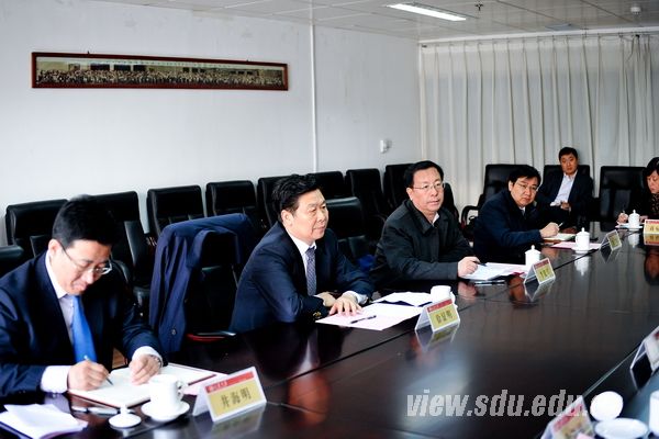 [本站讯]3月22日,山东大学校长徐显明到晶体材料研究所调研工作,听取相关汇报并就国家级平台建设、协同创新工作、队伍建设等与有关人员座谈。校党委常务副书记李建军一同调研。