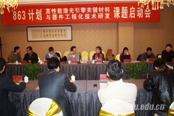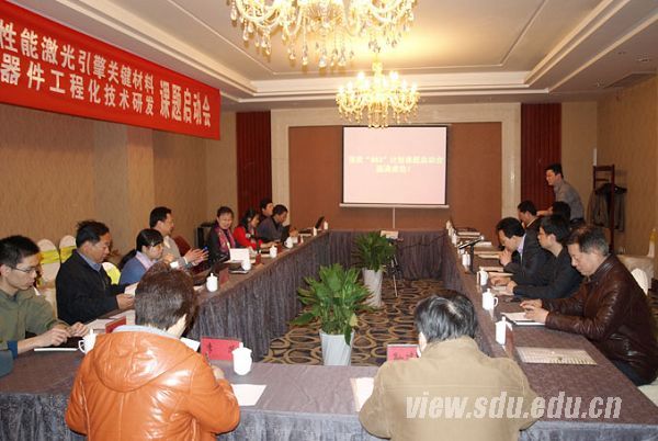 [本站讯]日前,科技部下发《关于863计划新材料领域晶体材料和高性能激光引擎技术研究主题项目立项的通知》,山大华特子公司——山东华特知新材料有限公司作为项目牵头单位的“高性能激光引擎关键材料与器件工程化技术研发”主题项目获得批准立项,获批“863计划”专项经费1030万元。3月4日,该项目启动会在山东大学举行。会前,山东大学副校长张永兵与部分参加项目启动会的专家进行了交流。