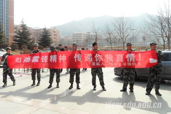 军中骄子,时代雷锋。山东大学国防生“弘扬雷锋精神,传递你我真情”的口号在山大学子中传递,广大学子纷纷为贫困地区捐赠衣物,为帮助社会弱势群体献出自己的一份力量。