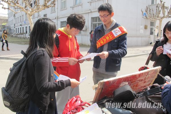 践行志愿,爱心相传。山东大学泉城路志愿服务岗亭开展了主题为“深化雷锋精神,建设美丽山东”的公益活动。志愿者们向来往市民发放倡议书,提倡拒做一日雷锋,而是将雷锋精神落实到日常生活中。