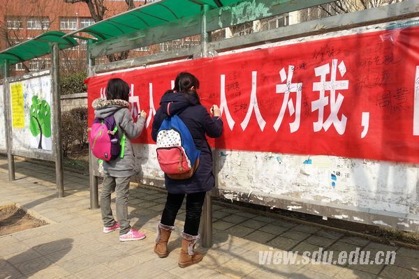 学雷锋日活动期间,山大学子积极参与到学校、学院组织的关心弱势群体、帮老助残、勤俭节约等各类志愿服务活动中,以自身行动彰显青春正能量。