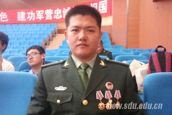 秦建武,信息学院2009级本科生。2007年考入山东大学,一年后应征入伍,两年内三次荣立三等功,两次被评为优秀士兵。服役期满后重返山东大学继续学业,被选拔为国防生,再次入伍,并承担起新生军训教官任务。2012年获 “2011中国大学生年度人物”入围奖,其先进事迹被中央电视台、解放军报、人民网等媒体报道,引发社会各界的普遍关注。