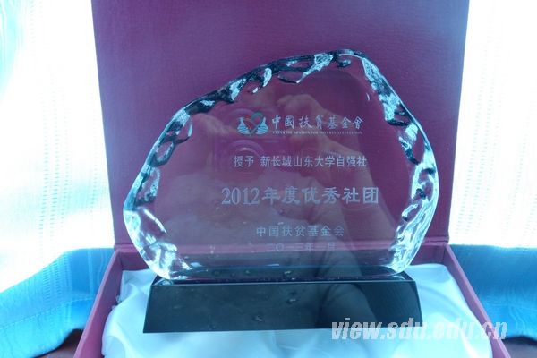 [本站讯]近日,在新长城高校自强社年度评优活动中,山东大学自强社被中国扶贫基金会授予“2012年度优秀社团”称号,是全国仅有的两个连续三年获评“年度优秀社团”称号的自强社之一。