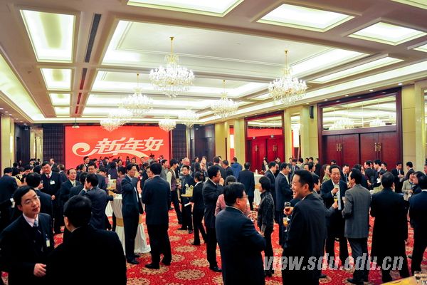 驻济各界校友代表,山东大学校董、山东发展研究院理事、合作单位领导,部分驻济高校党政负责人;山东大学党委常务副书记李建军,党委副书记方宏建、仝兴华、尹作升,副校长张永兵、娄红祥、陈炎、韩圣浩,总会计师曹升元等校领导以及各学院、部分职能部门主要负责人200余人参加了联谊会。