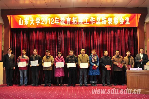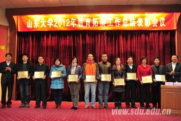 [本站讯]12月19日,山东大学在中心校区召开2012年招生及教育拓展工作总结表彰会议,对2011-2012年度教育拓展工作先进集体和优秀个人进行表彰。校党委副书记方宏建、副校长陈炎出席会议并为获奖者颁奖。 会上,方宏建和陈炎分别宣读了学校关于2012年本科招生拓展奖和2011-2012年度教育拓展工作先进集体和优秀个人的表彰决定。陈炎在讲话中肯定了教育拓展工作所取得的优异成绩,同时对下一步教育拓展工作提出了几点要求:要准确把握和分析招生新形势,妥善做好不同省份生源情况、不同地区专业需求、不同中学生源层次等方面的分析研究,从而保证招生咨询工作的科学性和有效性;要加强媒体宣传和数字化宣传材料开发,更大层面上提升宣传覆盖面;要重视拓展组的奖励和管理工作,提升全校师生参与拓展工作的积极性。 本科生院常务副院长胡金焱主持会议,并从本科人才培养的角度对深化教育拓展、延揽尖子生源提出了工作理念和做法。本科生院副院长、本科生招生办公室主任柳丽华回顾总结了2012年招生及教育拓展工作的基本情况,通过与兄弟院校招生情况的详尽对比分析了学校在延揽优质生源方面的差距,提出下一步教育拓展的工作重点、工作思路和工作目标。2012年度本科招生“突出贡献奖”获奖者、档案馆刘培平教授作了典型发言,从精神层面、物质层面和策略技巧等三个方面详细地介绍了开展教育拓展工作中的经验心得。山东大学(威海)本科招生办公室相关人员,省内外教育拓展工作组组长、骨干等100余人参加了会议。 山东大学每两年一次,对在招生宣传和教育拓展工作中表现突出的集体和个人进行表彰。近年来,在学校招生领导小组的指导下,在全校师生的广泛参与下,在教育拓展人员的辛勤劳动下,教育拓展工作基本实现了“学校知名度提高、生源质量提升、生源结构优化”的拓展效果。