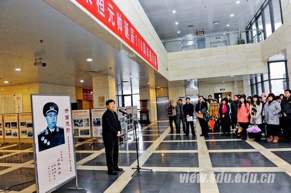 [本站讯]12月14日,山东大学纪念罗荣桓元帅诞辰110周年图片展在中心校区知新楼A座一层西厅开展。山东大学校长徐显明出席开幕式并致辞。