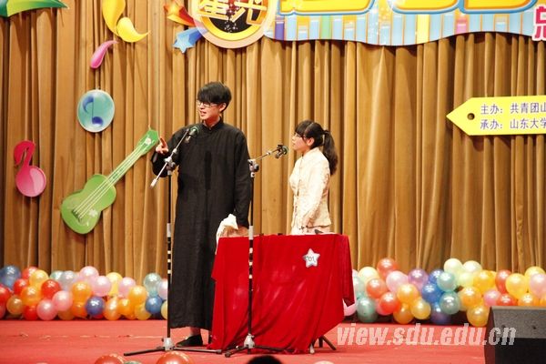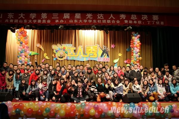 [本站讯]12月1日晚,山东大学第三届星光达人秀总决赛在中心校区举行。大赛历时一个月,共有四百多个节目参与,经过初赛、复赛和总决赛层层筛选,十二个节目脱颖而出,分别从器乐、舞蹈、相声、武术、魔术等方面秀出了山大达人的风采。舞蹈《山楂树之恋》夺冠,魔术《魔幻艺术》和瑜伽《云水禅心》获二等奖,相声《学叫卖》、武术《中华武魂》、闫星合的《青藏高原》以及张辰独唱《亲爱的小孩》获三等奖。 比赛节目异彩纷呈,会堂里掌声如潮。Rainstorm乐队的开场曲点燃了全场观众的热情,主唱李政军受到观众的欢迎;传统相声《学叫卖》展示了旧时代小商小贩走街串巷买卖吆喝的情景;街舞协会带来的《showgirl》充满喜剧色彩,颠覆了大家对街舞的认识;萨克斯悠扬清亮的乐声让大家忙碌的心得到小憩;来自体育学院的武术表演《中华武魂》展示了中华武学的博大精深;常斌的原创歌曲《离开你以后》记录了自己真实情感经历;张辰《亲爱的小孩》用动感旋律为观众带来了一场听觉盛宴;瑜伽表演首次登上达人秀舞台,展示了人体的柔与美;经济学院带来的舞蹈《山楂树之恋》把观众们带回到往昔纯真的年代;魔术协会带来的精彩表演让观众赞叹不已。 人人墙互动成为一大亮点,上面有浙江大学发来的贺电:“预祝山大社联星光达人秀圆满成功”;有来自社联老成员的祝福:“凡你在处,就是社联;社联在处,就是山大”;有来自亲友团的声音:“爱故事,爱文艺,爱原创——支持常斌!”还有来自场内外众多观众的互动。两小时内发表的2213条信息使现场气氛一次次掀起高潮。晚会由山东电视台节目主持人、山大校友蒋佳琦主持。来自山东大学党委学工部、团委、国际教育学院的老师,山东电视台新媒体中心编导李双子观看了晚会并担任评委。驻济高校社联以及山东大学学生会、青年志愿者联合会、院社联、校内媒体代表等也到现场观看了比赛。 星光达人秀由山东大学团委主办,校学生社团联合会承办,是一项具有代表性的学生社团精品活动。该活动2010年首次举办,节目种类、质量、效果、参与度、影响力等方面连年进步。