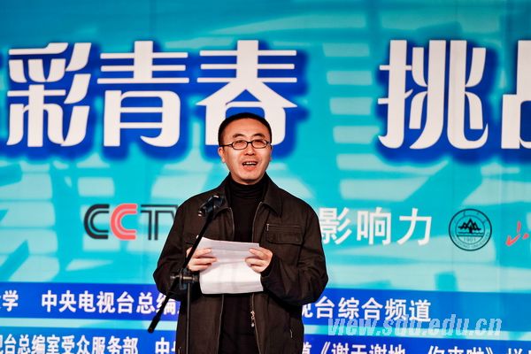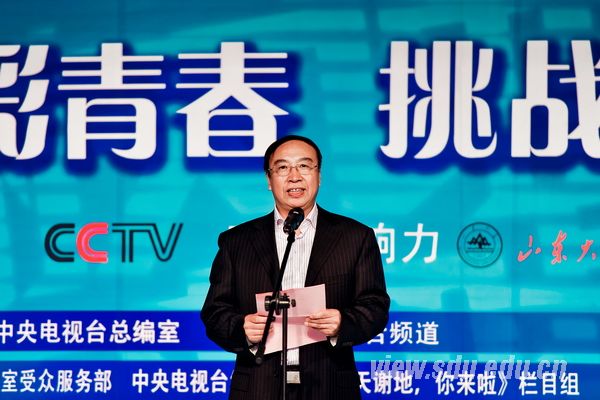 [本站讯]12月8日下午,中央电视台总编室携手综合频道《谢天谢地,你来啦》栏目组来到山东大学,开展“五彩青春,挑战自我——青年影响力大型展演活动”。山东大学党委书记李守信、中央电视台总编室副主任秦明新出席活动并致辞,山东大学党委副书记尹作升、总会计师曹升元,中央电视台总编室受众服务部主任刘建鸣、综合频道节目副主任过彤出席活动。中央电视台主持人孙小梅、付玉龙主持了展演活动。