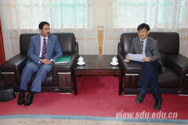 会见中,娄红祥简要介绍了山东大学的历史和现状,并就学校的国际化战略进行了说明。他说,中国和沙特都是历史悠久的国家,在文化上都有自己的特色。山东大学地处中国文化的发源地——齐鲁大地,非常重视儒家文化的振兴和发展,希望双方加强中沙文化交流。娄红祥建议,双方共同在山东大学建设沙特中心,通过这一平台,加强与沙特高校之间的长期合作与交流,促进教师交流与科研合作,为人类和平以及社会和谐发展做出努力。萨利哈先生对山东大学的热情接待表示感谢,他盛赞了娄红祥的提议,对这一平台的建设表示支持。他提出要加强山东大学与沙特使馆文化处之间的沟通,共同制定行动时间表,打造沙特中心,并愿意为山大学生提供沙特阿卜杜拉国王奖学金,支持学生赴沙特学习阿拉伯语言和文化。国际事务部部长邹难、医学院有关负责人参加了会见。
