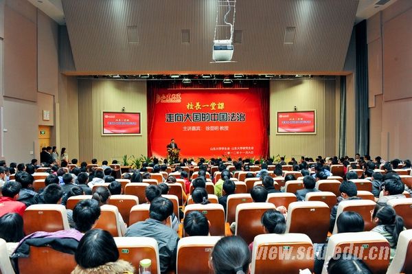 [本站讯]11月6日晚,山东大学校长徐显明教授以“校长一堂课”的形式为同学们讲授了“走向大国的中国法治”,来自6个校区不同专业的600余名同学现场聆听了校长的精彩报告。