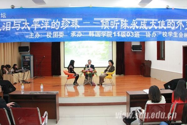 演讲中,陈永成从“美国战略东移”、“美国东移战略能否成功”、“我们应该如何应对”以及“亚太地区的前景”四个方面向现场师生阐述了其对“亚太地区形势变化及走向”的看法。他提到,导致当前亚太地区的形势比较混乱的主要原因就是“美国战略的东移”。针对这一问题,他从美国内外两方面进行分析,得出了美国难以实现这一战略的结论。在谈到“我们应该如何应对”以及“亚太地区的前景”时,陈永成认为,“美国东移战略”来势汹汹,但却气势未至,美国不能与中国进行对抗,否则只能是害人害己。经济重心“西降东升”的趋势,“世界多极化”的趋势都是必然的,但与此同时美国独霸世界的战略又不可动摇,因此全球局势目前到了一个历史转型的交融期。面对这一局势,陈永成说,中国政府要做的就是采取政策应对,依靠实力,抓住、用好并尽量延长当前的战略机遇。他还讲到,亚太地区的战争虽然不会爆发,但有可能擦枪走火,因此我们仍然要有所准备。演讲最后,陈永成就钓鱼岛以及南海问题发表了看法,并针对同学们提出的关于目前形势下中日企业和印度市场的发展前景等提问作了解答。山东大学(威海)副校长赵玉璞主持讲坛,学生处、校团委、韩国学院等相关负责人以及500余名师生参加了论坛。