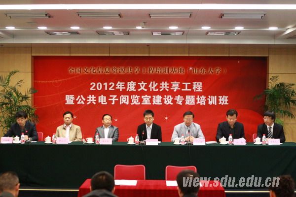 全国文化信息资源共享工程是文化部、财政部共同组织的国家重大文化建设工程。为贯彻落实文化部关于进一步加强基层文化队伍建设的要求,充分发挥文化部全国基层文化队伍培训基地作用,推动文化共享工程培训工作的全面开展,文化部全国文化信息资源共享工程建设管理中心依托山东大学全国基层文化队伍培训基地成立了本基地。此次承办的“2012年度文化共享工程暨公共电子阅览室建设专题培训班”40名学员分别是我国东部8省市、区(北京、天津、甘肃、内蒙古、黑龙江、辽宁、吉林和山东)文化馆、艺术馆、图书馆的业务骨干。