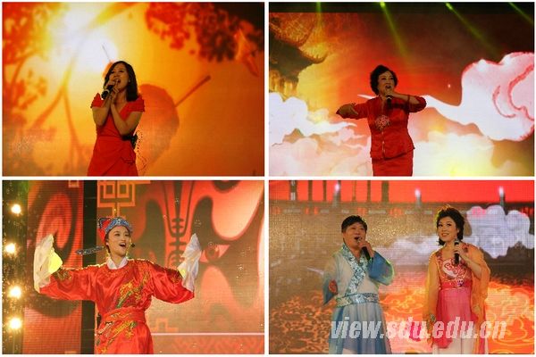 [本站讯]10月14日晚,“青春之歌”——庆祝山东大学建校111周年校友专场文艺晚会在山东大学体育馆隆重举行。山东大学党委副书记方宏建、副校长陈炎、总会计师曹升元出席晚会。 晚会以《我的山大我的青春》为主题,突出激情、畅想、收获和希望。在轻松欢快的节目中彰显母校“为天下储人才,为国家图富强”的办学宗旨,展示广大校友践行母校“学无止境,气有浩然”的校训精神,在各自岗位努力拼搏,为母校争光的风采,表达校友对母校建设世界一流大学的美好祝愿。校友们以喜悦心情祝福山东大学111周年华诞,表达对母校的深厚情感;回顾、展现和展望山东大学的历史、现在与未来,抒发山大人对建设世界一流大学的信心。 晚会由福建电视台新闻频道主持人王智辛(中文89)、山东电视台主持人胡雨萱(哲学96)和在校生李春阳(外语12)、王思佳(历史12)共同主持。 方宏建以一曲《期待重逢的那一天》表达了母校对校友的期待和祝愿,山大北京校友会常务副会长于新年、贵州校友会副会长江波等校友带来了不同年代的流行歌曲。济南校友会王谢桐、张迎春等校友献上诗朗诵《家•国•天下》表达了对母校的赞美和衷心祝愿。济南校友李鸣镝、孙岩等校友编排的交谊舞表演《我们的生活充满阳光》勾起了大家的美好回忆。音乐01级校友毕文静原创的歌曲《青涩》让校友们回忆起当年的校园生活。烟台校友会李亚男(口腔93级)的黄梅戏《女驸马》、威海校友会郇艳丽的京剧《贵妃醉酒》、退休职工李俊兰的豫剧《谁说女子不如男》和机关教工刘丕平、马桂蓉的花鼓戏《刘海砍樵》带来了传统戏曲的享受。青岛校友会会长米永法等校友的诗朗诵《山大,青岛欢迎您》表达了四万青岛校友盼望青岛校区早日建成,渴望山大回归青岛的心愿。威海校区毕业的丛威校友和12级新生张靖雯合说了相声《我为母校做贡献》,表达了新老山大人为母校做贡献的愿望。艺术学院交响乐《节日序曲》、《茉莉花》和舞蹈《龙飞凤舞》、《雪域放歌》博得全场热烈喝彩。大学生艺术团也带来了情景剧《青春纪念册》、合唱《谁不说俺家乡好》、啦啦操表演及Rainstorm乐队的精彩节目。山大夕阳红艺术团带来了合唱《校歌》和欢快的藏族舞蹈《溜溜的康定 溜溜的情》,展现了老教授依然激昂的青春。最后,叶正丰老教授、杨艺校友,周超同学和杨榕嘉小朋友真情合作演绎的《校友之歌》再次把晚会推向了高潮。 本次校庆晚会由山东大学校友总会主办,校团委、艺术学院和贵州校友会协办,同时得到了贵州校友会和青岛校友的大力支持。科社87级江波校友带领他的团队倾力奉献,实现了校友回报母校、繁荣校友文化的愿望,为111周年校庆献上了一份厚礼。山大北京校友会副会长兼秘书长周建民、青岛校友会副会长兼秘书长肖黎、烟台校友会秘书长宋华西、山大校友企业家俱乐部理事长李宇兵和常务副理事长贾伟光等各地校友会代表及4000名师生共同观看了演出。