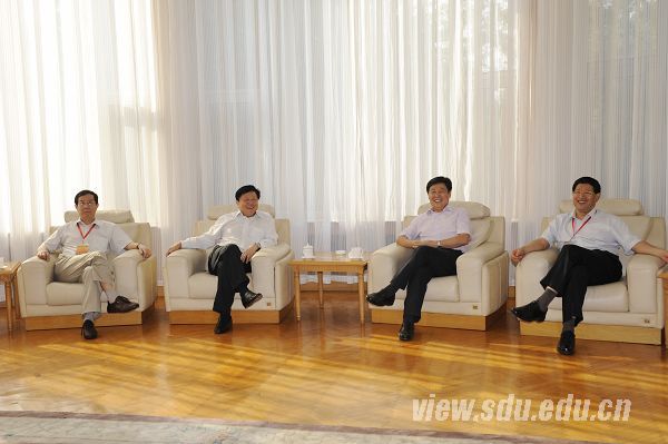 山东大学校长徐显明(右二)会见部分知名校友