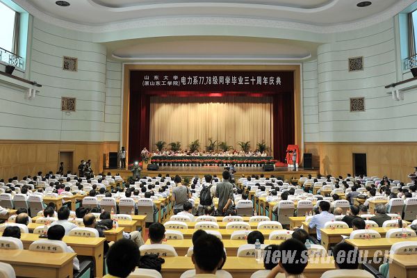[本站讯]9月15日上午,山东大学(原山东工学院)电力77、78级学生毕业三十周年庆典活动在济南南郊宾馆隆重举行。50多名老教师代表以及来自世界各地的电力77、78级240余位校友共襄盛会,共话师生情谊。山东大学校长徐显明、副校长张永兵出席庆祝大会。庆祝大会前徐显明会见了部分知名校友。