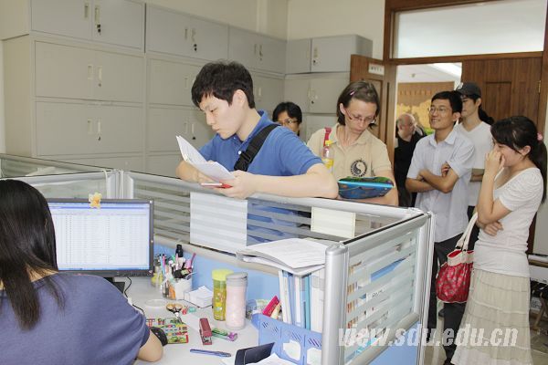 工作人员为留学生新生办理注册报到手续 留学生新生完成报到最后程序,准备领取学生证和分班测试准考证 留学生事务办公室专门为中国政府奖学金预科生召开注册报到说明会,集中办理报到手续