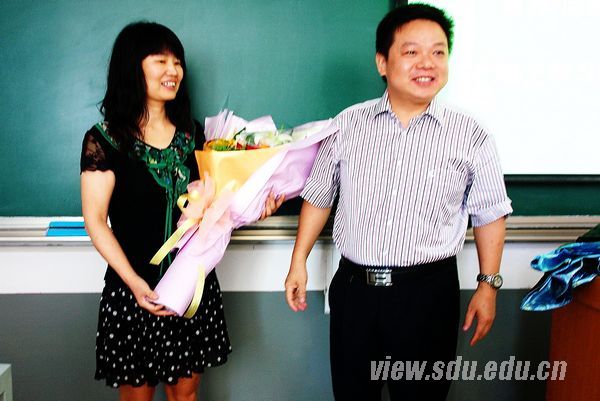 总会计师曹升元(右)向授课老师献鲜花
