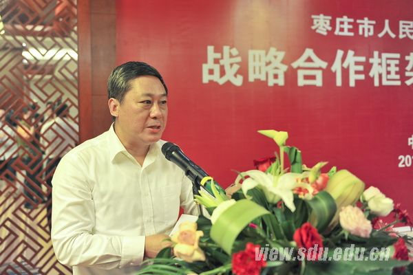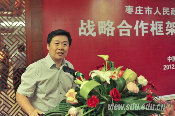 仪式上,徐显明对枣庄市委、市政府长期以来对山东大学建设、发展所给予的关心、支持表示感谢,对枣庄市近年来取得的发展成就,特别是文化产业发展的成绩给予了充分肯定。他表示,山东大学选择与枣庄市开展紧密合作,一方面是因为两者有着良好的合作基础,另一方面这也是挖掘研究北辛文化、弘扬墨子博大精深思想的使命使然。下一步,山东大学将充分发挥人才、科技优势,围绕枣庄市产业发展战略,进一步加强双方在战略性、技术性等领域的协同创新与合作交流,积极服务枣庄市经济社会发展。