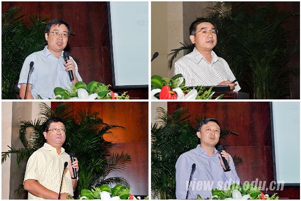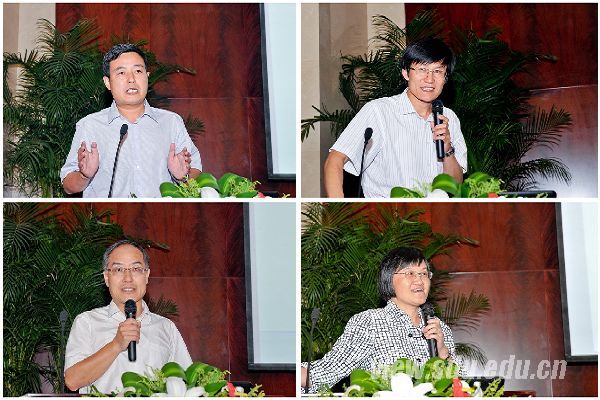 法学院院长齐延平(左上)、物理学院院长梁作堂(右上)、电气工程学院院长刘玉田(左下)、医学院常务副院长龚瑶琴(右下)分别发言