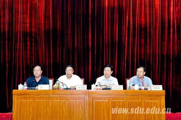 [本站讯]8月15日下午,山东大学党委在邵馆报告厅召开第三批大部制改革及部分单位新任领导干部集体谈话会。校党委书记李守信、校长徐显明、校党委常务副书记李建军、校党委副书记尹作升出席谈话会。