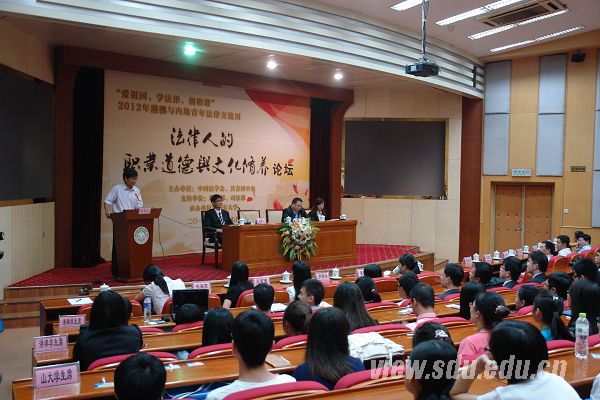 [本站讯]8月17日,由中国法学会、共青团中央主办,司法部、教育部协办,山东大学承办的“2012年港澳与内地青年法律交流周”之主题论坛活动在山东大学中心校区邵逸夫科学馆报告厅举行。百余名港澳、内地青年法律学子参加了活动,山东大学副校长娄红祥出席活动并致辞。