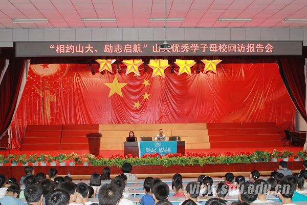 [本站讯]“浓浓学子意,深深母校情”。暑假期间,山东大学开展了“相约山大,励志启航”优秀学子母校回访活动,来自山东大学各学院的239名志愿者组成的33支回访团队在全国17个省(市、区)的300余所中学陆续开展回访活动。本次回访活动,除了给正为踏入象牙塔而拼搏努力的学弟学妹们送去问候和鼓励,心怀感恩的志愿者们还通过一场场精彩纷呈的宣讲会,展现了山东大学这所百年学府厚重的文化底蕴与蓬勃的发展活力,也表现出山大学子浓浓的自豪感与归属感。 本次回访活动充分发挥了山东大学学生数量庞大、生源分布广泛的优势。在省外,江苏连云港分队的志愿者们走访了东海高级中学、白塔高级中学、新海高级中学,队员们开展了“魅力山大”大学介绍宣讲会、“感恩母校”个人情况报告会和“励志启航”学习经验交流会。从学校渊源、名家名师到优美的校园环境、先进的教学设施以及新颖的培养模式,志愿者们充分展示了百年山大的深厚人文底蕴和与时俱进的青春活力。队员们讲述了在山大的学习、生活情况以及丰富多彩的社团活动,并吐露亲身感受。这引发了中学生们对山大生活的无限遐想与憧憬。在黑龙江,志愿者们与高二学生面对面地进行交流互动,谈经验、讲体会、解惑答疑,同时发放宣传手册和报考指南等资料,以为学弟学妹们考取自己理想的大学提供帮助。另外,古典韵味浓郁的山东大学纪念书签更是深得同学们的喜爱。活动结束时,同学们纷纷走上讲台,将自己的名字签在活动衫上,以此留念。在了解到学长学姐的大学生活之后,这群即将升入高三的中学生们对以后的学习充满了动力,期待着大学岁月的来临。 在省内,母校回访活动也受到了当地师生的一致认可与好评。青岛分队的志愿者们用自制的PPT向高三学子介绍了山大的历史沿革、学术氛围、才人培养模式,并结合自身经历体会描述了大学中浓厚的学术氛围与丰富多彩的组织拓展活动,吸引了众多高三学子的目光,引起了大家连声赞叹。来自外国语学院的潍坊分队在活动中充分发挥自己的语言优势,运用多门外语进行自我介绍和互动,以图文并茂的方式向学子们展示了山东大学济南六个校区及青岛、威海校区的风采,美丽的校园使同学们对大学生活更加向往。此外,临沂分队、济宁分队也举行了启动仪式。在队长的带领下,志愿者们分工明确、整装待发。 “相约山大•励志启航”优秀学子母校行活动由山东大学团委和本科生招生办公室联合举办,是学校实现“建设世界一流大学”办学目标的重要举措之一,是同学们增加阅历、提高能力、增强才干的重要渠道。通过回访活动,中学师生更多地了解了山东大学的人才培养特色及本科招生政策。同时,优秀学子母校行活动作为山东大学教育拓展品牌活动,是学校实施开放式发展战略的形式之一,是吸引优质生源、提高生源质量的重要举措,对建设世界一流大学提供生源保障具有长远意义。