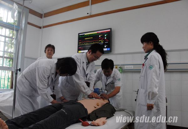 据悉,齐鲁医院临床技能模拟训练中心采用国际先进的设计理念,达到了国家全科医生临床培养基地和执业医师考站设置的要求,中心建有急诊急救训练室、模拟病房急诊急救训练室、重症抢救训练室、模拟穿刺训练室、腹部触诊训练室、模拟分娩室、基础操作训练室、数字化模拟训练室、模拟诊疗与多站考试区(OSCE考站)等17间功能室与培训用房,配备了SimMan 第三代综合模拟病人、ALS高级生命支持模拟人、多媒体监控和网络直播教学系统等具有国际水准的现代化模拟教学和培训设施,通过应用情境式教学、多媒体教学、PBL教学等先进的教学培训手段,能够针对各种层次的临床医生、护理人员、医学生及相关人员开展多类临床技能的培训考核,每年培训规模可达2000人次,是目前我国国内规模最大、功能最全、设备最先进的临床技能模拟训练中心之一。同时成立的山东大学齐鲁医院美国心脏协会心血管急救培训中心,是山东省首家同时具有高级生命支持和基础生命支持培训资质的培训基地。截止目前,医院已有6名临床专家获得美国心脏协会心血管急救培训导师资格,每年可对全国医疗、护理、社区和公共场所工作人员进行心肺复苏培训1000人次,中心将成为我国重要的心脏病急救培训基地之一。
