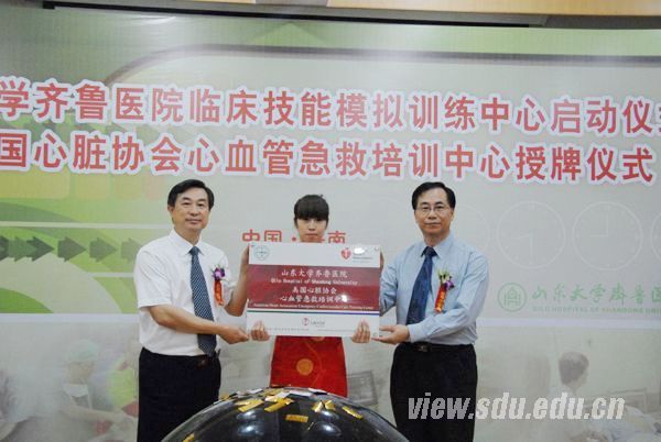 [本站讯]7月6日上午,山东大学齐鲁医院临床技能模拟训练中心启动仪式暨美国心脏协会心血管急救培训中心授牌仪式举行。山东省卫生厅巡视员康永军、山东大学副校长娄红祥出席仪式。