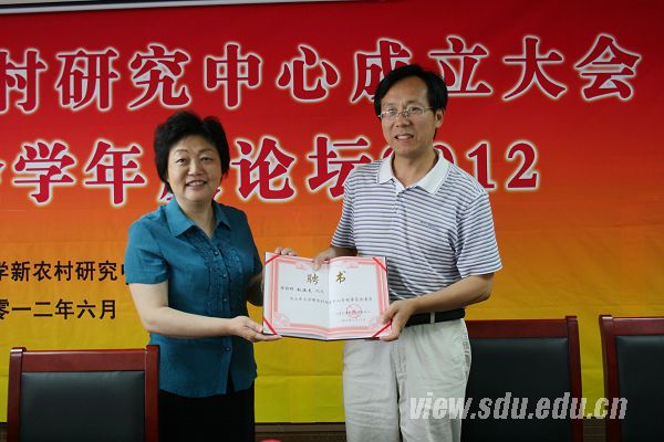 [本站讯]6月22日上午,山东大学新农村研究中心成立大会暨农村社会学年度论坛2012在中心校区知新楼A座思源报告厅举行。山东省原副省长、山东大学原党委书记邵桂芳,山东大学副校长樊丽明,国务院发展研究中心中国发展研究基金会副秘书长赵树凯,山东省委农村工作办公室副主任刘同理,济南龙海传媒有限公司董事长赵海龙等出席成立揭牌仪式。樊丽明和赵海龙共同为山东大学新农村研究中心揭牌。樊丽明还为山东大学新农村研究中心高级顾问及聘任专家颁发了聘书。 邵桂芳从自己主管山东省农业和农村经济工作的经验谈起,回顾了山东省新农村建设的历程以及自己对农业发展的见解,并对未来农业的发展提出了农业走出国门走向世界的设想。樊丽明代表学校对各位专家学者的到来表示欢迎,并为大家对山东大学人文社会科学研究的大力支持表示感谢。她表示,山东大学新农村研究中心的成立体现了整合校内多学科力量的跨学科性、课题规划和研究的开放性及学校与企业合作的协同创新性等三个特点,同时也是山东大学人文社会科学与企业开展深度合作的有益探索。她希望新农村研究中心能够凝聚各相关学科的力量对新农村问题展开研究,从而有效应对我国农村经济社会发展中遇到的各类现实问题。赵海龙简要介绍了自己企业的基本情况,表示要大力支持并积极参与到山东大学新农村研究中心的建设工作中来,以取得更多高质量的学术成果,进一步提升山东大学对新农村问题的研究水平。华中科技大学贺雪峰教授和山东社科院社会学研究所所长李善峰教授对山东大学新农村研究中心的成立表示祝贺,同时希望山东大学新农村研究中心与国内同行一道共同为认识和改造中国农业和农村建设献计献策,在学术上做出应有的贡献。 成立仪式上,山东大学人事部部长方辉宣读了山东大学新农村研究中心成立批文,山东大学新农村研究中心主任林聚任介绍了山东大学新农村研究中心的成立背景及中心的工作思路和发展规划。仪式由山东大学哲社学院院长刘杰主持,国务院发展研究中心、山东省委农村工作办公室、中国社会科学院、山东社会科学研究院、南京大学社会学院、中央财经大学社会发展学院、南京农业大学人文学院、华东理工大学人文科学研究院、济南龙海传媒有限公司,山东大学学术研究部、哲社学院、政管学院、管理学院、土建学院、卫生管理与政策研究中心等单位的有关专家学者及学生代表六十余人参加了仪式。 成立仪式后,赵树凯和刘同理为大家作了精彩的学术报告。赵树凯用漫谈的方式从中央政策研究的角度梳理了十年来我国关于农村问题政策改革的成就及面临的困扰,建议在座的各位学者尤其是研究生要树立问题意识,从中国在转方式调结构过程中涌现出的一系列问题出发开展关于新农村问题的研究,为我国农业的发展贡献自己的力量。刘同理在报告中总结了十年来党中央国务院关于农村各项基本政策的三大特点,即形成了支持“三农”的政策体系、对新农村建设的认识不断深化要求不断提升、基层创新不断涌现。他指出目前农村具有社会主义现代化建设的大后方、社会矛盾的缓冲带、民族文化的滋生地三大功能。他还着重介绍了目前山东关于农村发展的思路及具体措施。 22日下午,与会代表就山东大学新农村研究中心的发展规划及2012年研究课题论证召开了专题讨论会。23日上午,农村社会学年度论坛2012将就《中国农村社会学研究》的编辑等有关事宜进行讨论。 山东大学新农村研究中心是为贯彻胡锦涛总书记在清华大学百年校庆讲话精神及高等教育要协同创新的要求,为全面、深入研究当前快速城市化和工业化背景下农村经济社会发展,推动新农村建设,由山东大学与济南龙海传媒有限公司共同发起成立的集高端学术研究、产学研转化、服务社会民生为一体的综合性科研机构。该中心依托山东大学社会学、经济学、政治学、管理学及城乡规划与建筑学等学科组建而成,拥有一支来自校内外知名农村问题研究专家组成的50余人的学术队伍,其中学科带头人10余人,兼职客座专家近20人。中心的发展目标是努力建设成为国内一流的新农村研究的学术高地、新农村发展咨询决策的政府智库、成果应用与开发的产学研平台。
