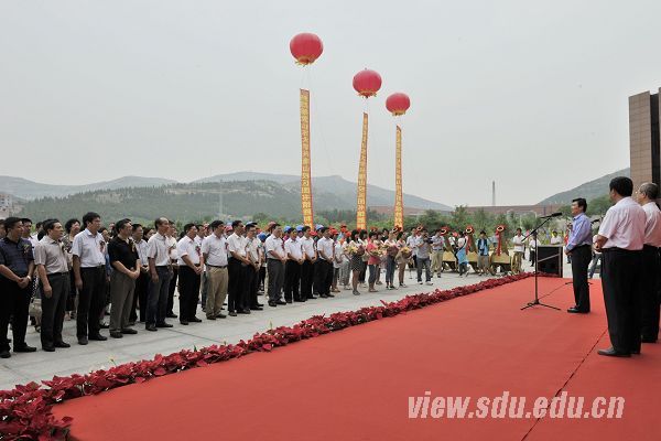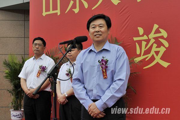 [本站讯]6月25日上午,兴隆山校区红旗招展、绿树成荫、蝉鸣阵阵,一派喜庆的气象,兴隆山校区图书馆竣工典礼在这里隆重举行。山东大学校长徐显明出席典礼并讲话。副校长张永兵主持典礼,副校长陈炎、总会计师曹升元出席典礼。