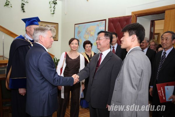 [本站讯]6月24至29日,山东大学党委副书记李建军率团访问俄罗斯高校,出席了在俄罗斯人民友谊大学举行的中俄研究生院毕业典礼,并访问了圣彼得堡大学国际关系系。 在中俄研究生院毕业典礼上,俄罗斯人民友谊大学校长菲利波夫和李建军共同为联合培养的四位硕士研究生颁发了两校学位证书和毕业证书。李建军发表讲话,回顾了两校交往、合作过程中取得的成就,高度评价了联合研究生院这个平台为两校及两国教育交流合作做出的贡献。李建军还介绍了山东大学正在进行的世界一流大学建设情况和实行的国际化战略,希望双方互派更多的交换生进行联合培养,在更多的学科领域进行更深层次的合作。在俄罗斯人民友谊大学访问期间,李建军还会见了该校副校长基里巴耶夫和克拉斯诺娃、人文社科系主任茨威格等学者。 根据安排,李建军一行还访问了圣彼得堡大学国际关系系,与该校校长助理弗拉基米罗维奇和国际关系系主任诺维科娃会谈。双方就开展学术交流、科研合作问题达成诸多共识,为今后进一步开展合作与交流,并逐步在院系合作基础上签署两校合作备忘录做了准备。在莫斯科访问期间,李建军拜会了中国驻俄罗斯大使馆教育处公使衔参赞赵国成等使馆官员,听取了使馆领导对学校交流的意见和建议。山东大学研究生院、国际合作与交流处等相关部门负责人参加了出访活动。 俄罗斯人民友谊大学是一所国际性大学,目前有在校生约13000人,其中本科生11000多名,研究生2000名左右;有来自102个国家和地区的2640名留学生。山东大学与俄罗斯人民友谊大学于2001年签署合作协议,2003年签署了两校间关于学生交流的协议。山东大学每年派出俄语专业三年级整班学生到俄罗斯人民友谊大学进行为期一学期的俄语学习。2001年,中俄双方在中俄教文卫体合作委员会(副总理级,现更名为中俄人文合作委员会)框架内设立了中俄研究生院项目。山东大学于2007年12月与俄罗斯人民友谊大学签署了联合培养研究生的协议。2008年11月,经教育部批准,山东大学与俄罗斯人民友谊大学正式成立中俄联合研究生院。截至2012年6月,联合研究生院联合培养出硕士生8人,其中山东大学学生2人,俄罗斯人民友谊大学学生6人;历史学方向3人,政治学方向4人,哲学方向1人。此外,山东大学还参加了上海合作组织“上海合作组织大学”项目,与俄罗斯人民友谊大学在生态学领域展开了积极合作。