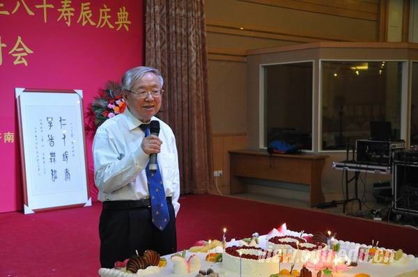 赵明义教授在讲话中对大家的光临和祝贺表示感谢,为学生们所取得的成绩感到骄傲,为举行这一活动感到高兴和激动。他强调,这次会议并不仅仅是为他一个人庆祝生日,而是表达了大家对他这一代老理论工作者、老教育工作者的共同祝愿。山东大学科学社会主义学科能有今天的成就,是几代人几十年共同努力的结果,与学校、学院的大力支持和重视密不可分。他表示,将在有生之年一如既往地为山东大学和科社学科的发展贡献力量。