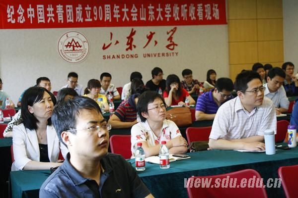 下午,庆祝中国共产主义青年团成立90周年大会在北京人民大会堂隆重召开,中共中央总书记胡锦涛在会上发表了重要讲话。会议期间,山大师生代表在中心校区学人大厦集体观看大会直播盛况,广大师生也通过网络、电视等媒体积极收看大会直播。胡锦涛总书记的讲话在山大团干部、青年教师和青年学子中引起强烈反响。观看现场,同学们纷纷表示,祖国的发展为我们创造了良好的条件、广阔的舞台,我们应该不负重托,不辱使命,立志成为民族的希望、祖国的未来。