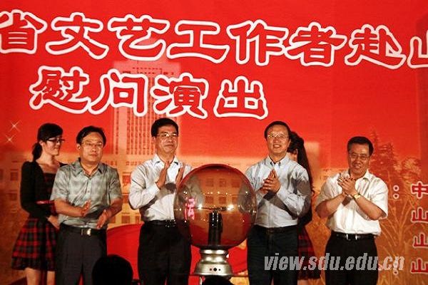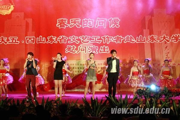 晚上,“庆五•四”山东省文艺工作者慰问演出在山东大学中心校区科学会堂举行,“世纪金榜杯”青春文学征文活动同时启动。校党委副书记方宏建出席活动,与山大青年学子共度五四青年节。各学院学生代表热情观看演出。丰富多彩的活动既展示了中国博大精深的传统文化,也展示了青年昂扬向上的精神风貌,调动了广大学生的热情与积极性。