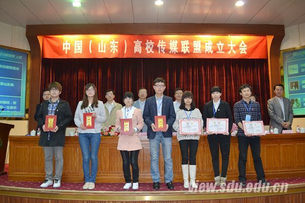 [本站讯]4月22日,中国(山东)高校传媒联盟成立大会在山东大学中心校区举行。山东大学党委副书记方宏建,山东大学校友、《中国青年报》社副总编刘健,共青团山东省委副书记任海涛出席会议并共同为中国(山东)高校传媒联盟揭牌。 方宏建代表山东大学致欢迎辞,对中国(山东)高校传媒联盟的成立表示祝贺。他说,山东大学高度重视校园媒体发展,将校园媒体作为重要的育人平台,着力加强新媒体建设,提升学校的社会美誉度和影响力。相信联盟的成立将为山东省高校校园媒体的发展带来新的机遇,促进山东大学校园媒体的发展。 刘健在讲话中介绍了中国高校传媒联盟自2008年发起成立以来的基本情况以及开展的一系列有影响力的活动。他说,中国(山东)高校传媒联盟作为全国第15个省级区域性联盟将更好地整合省内高校的媒体力量,为高校的校园媒体搭建一个交流、共享、提高、互惠的合作平台。 任海涛表示,校园媒体及其学生组织作为校园重要的宣传阵地和舆论窗口,在信息传播、学生品格培养和思想政治教育中发挥重要作用,希望中国(山东)高校传媒联盟积极整合省内外人才资源,充分发挥新媒体力量,为促进山东校园媒体整体水平的提高做出贡献。 仪式上,与会领导向第一届中国(山东)高校传媒联盟主席团成员颁发了聘书。中国青年报新媒体发展中心蔡华丽宣读了中国高校传媒联盟秘书处贺信,希望中国(山东)高校传媒联盟在成立后明确校媒定位,开掘自身特色,在服务学生成长的同时不断提升自身品牌建设。中国青年报山东记者站站长、中国(山东)高校传媒联盟秘书长郑燕峰宣布了第一届中国(山东)高校传媒联盟预备会议产生的第一届主席团单位及主席团成员名单。山东大学文学与新闻传播学院2010级硕士研究生、山东大学新闻网——山大视点网站学生记者团团长、中国(山东)高校传媒联盟第一届主席陈泓亮代表主席团发言,表示将不辜负领导老师的期望,充分发挥联盟的桥梁纽带作用,为山东省乃至全国校园传媒力量的发展贡献智慧和力量。山东大学党委宣传部部长李平生、共青团山东省委宣传部副部长彭莉以及全省13所高校党委宣传部及团委有关负责人、32家省内高校校园媒体的学生负责人参加了成立大会。会议由山东大学团委书记王君松主持。 下午,第一届中国(山东)高校传媒联盟召开理事单位全体会议。参会高校师生就如何发挥联盟的作用、加强新媒体建设、做好对外宣传和区域联合等问题进行深入探讨。中国青年报国内时事部主任刘畅作了《社会转型期的新闻守望》的专题讲座。