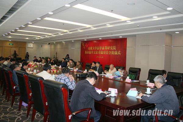[本站讯]4月26日,山东大学儒学高等研究院“集部儒学文献萃编”工程启动仪式在中心校区举行。国内儒学和古典文献研究领域近二十位专家、学者与会,就集部儒学文献的整理和使用以及相关问题展开热烈和深入的探讨。“集部儒学文献萃编”工程是国内学术界对集部文献首次展开的全方位、大规模的整理,乃填补空白之举。该工程除了能为儒学及相关研究提供资料上的便利,还将为相关人文学术研究探测新资源,拓展新空间,极大地推动相关研究的进展。山东大学副校长陈炎出席仪式并致辞。