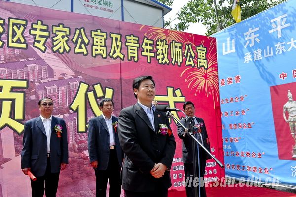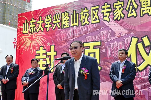 [本站讯]4月28日上午,山东大学兴隆山校区风和日丽,春风荡漾,经过248天的紧张施工,青年教师公寓和专家公寓顺利封顶。校党委书记李守信出席仪式并宣布封顶,校长徐显明在仪式上讲话。