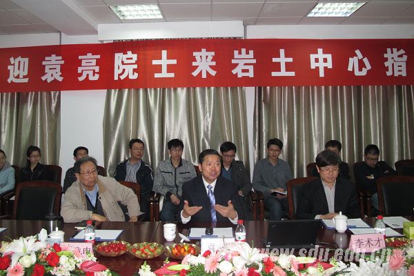 袁亮院士在报告会上首先介绍了目前我国煤炭行业所面临的机遇和挑战,分析了煤与瓦斯共采理论提出的相关背景;继而结合淮南矿区高瓦斯矿井实例,用详实的数据和生动的图表,阐述了煤与瓦斯共采的关键技术成果,包括低透气性煤层群卸压开采抽采瓦斯技术、无煤柱(护巷)煤与瓦斯共采技术等,以及这些技术在全国高瓦斯矿井中的推广应用和对行业的影响。袁亮院士介绍说,应用研究成果实现了煤与瓦斯共采,安全效果十分显著。袁亮院士还就如何创新、如何成才等话题同与会老师和同学展开了讨论。袁亮院士的报告深入浅出、高屋建瓴,与会人员纷纷表示受益匪浅。山东大学校长助理贾磊、土建与水利学院院长李术才、岩土工程中心朱维申教授及师生代表参加了报告会。报告会后,袁亮院士参观了岩土工程中心实验室,对岩土工程学科所取得的成绩给予了高度评价。双方还就科研项目、人才培养等合作事宜达成了初步意向。