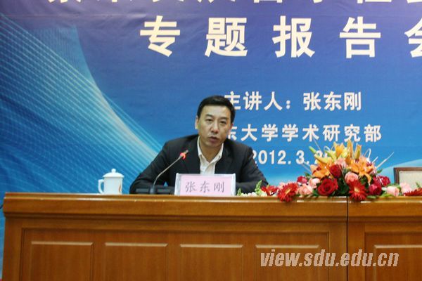 [本站讯]3月29日上午,教育部社会科学司副司长张东刚应邀在山东大学中心校区邵逸夫科学馆作了繁荣发展哲学社会科学专题报告,副校长樊丽明主持报告。 张东刚从党的十七届六中全会召开后中共中央办公厅、国务院办公厅转发《教育部关于深入推进高等学校哲学社会科学繁荣发展的意见》,教育部、财政部联合印发《高等学校哲学社会科学繁荣计划(2011-2020年)》等六个文件谈起,阐明了全党全社会对高校哲学社会科学的高度重视,这要求高校的哲学社会科学工作者要加强责任感和使命感,为国家未来的发展做出新的贡献。他以宏观的视野对未来十年繁荣发展高校哲学社会科学的总体目标、工作方针和主要任务进行了全面深入阐述,指出我们要以建设具有中国特色、中国风格、中国气派的哲学社会科学为根本任务,大力提升人才培养、科学研究、社会服务、文化传承创新的能力和水平,到2020年基本建成高校哲学社会科学创新体系。 张东刚着重从九个方面对高校哲学社会科学创新体系进行了系统阐发。一要建设中国特色的学科体系和教材体系;二要构建哲学社会科学研究创新平台体系;三要构建团队协同攻关与个人自由探索并重的研究项目体系;四要构建哲学社会科学全方位的社会服务体系;五要构建方便快捷、资源共享的哲学社会科学研究条件支撑体系,全面提高科研水平;六要构建结构合理的哲学社会科学人才队伍体系;七要建立“走出去”与“请进来”相结合的对外交流体系;八要建立健全哲学社会科学管理体系;九要构建教育、制度、监督、惩治相结合的学风建设工作体系。 樊丽明对张东刚的精彩报告表示感谢,同时对山东大学今后人文社会科学的发展作了部署。她说,未来十年学校文科的发展要按照“繁荣计划”的相关要求将项目、平台与人才建设有机结合,实现有效资源的科学合理高效配置,从而产出高水平的学术成果。关于文科人才队伍建设,她强调学校将针对青年教师、学科带头人、已退休学者三类人才启动不同的培育、发展计划,为学校人文社会科学未来的发展培养优秀人才和学术大师。 山东师范大学副校长张文新;山东大学文科各学院(中心、所)院长,分管科研的副院长,二级岗、三级岗教授,青年教师,科研秘书以及山东师范大学、山东财经大学、济南大学的有关部门领导和教师参加了报告会。