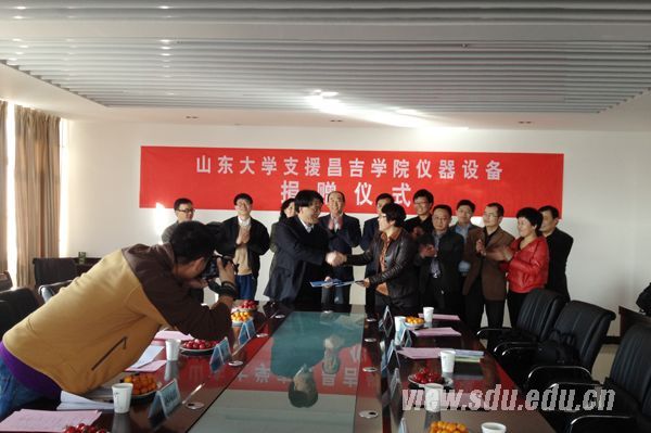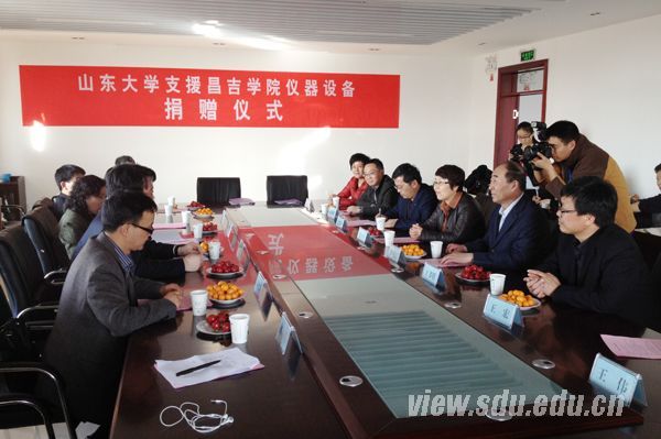 在5日举行的座谈会上,赵国群代表访问团感谢昌吉学院提供的宝贵交流机会,他提出双方要通过交流,相互学习、促进合作,争取在较短的时间内给予昌吉学院更多的帮助和支持。李再江对访问团的到来表示欢迎,对山东大学7年来对昌吉学院的支援表示感谢。他说,通过山东大学的对口支援,昌吉学院的人才队伍建设、学科建设、实验室建设等方面有了很大的提高,在此基础上,顺利申报了专业硕士学位研究生试点工作建设单位。随后,双方就工科专业建设,特别是工程硕士点建设相关的企业导师遴选、产学研合作、资源与平台建设以及存在的困难等进行了交流与解答。座谈会前,赵国群代表学校向昌吉学院捐赠了价值74万余元的实验设备116台(套)。