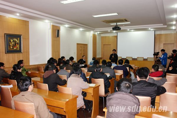 [本站讯]3月23日下午,山东大学在邵逸夫科学馆举行留学日韩学人茶话会,征询对学校国际与交流尤其是对日韩交流的意见与建议。副校长娄红祥出席茶话会并讲话。