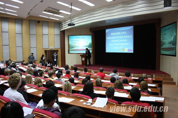 [本站讯]3月26日上午,2012年英国大学生“体验动感中国”项目开班仪式在山东大学举行,来自牛津大学、利物浦大学、UCL、剑桥大学、利兹大学等37所学校的93名英国大学生将在山东大学开展为期17天的体验动感中国研修班的学习。