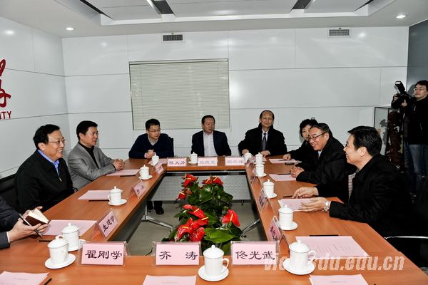 徐显明从历史悠久、规模庞大、学科门类齐全、办学特色显著等方面介绍了山东大学的情况。他还详细汇报了山东大学2011年完成的重点工作,其中包括:成功举办了110周年校庆,成功启动“985”三期建设,制定了面向未来十年的《攀越计划》,青岛校区建设全面启动,人才引进工作取得重大突破,科研成果走向世界。