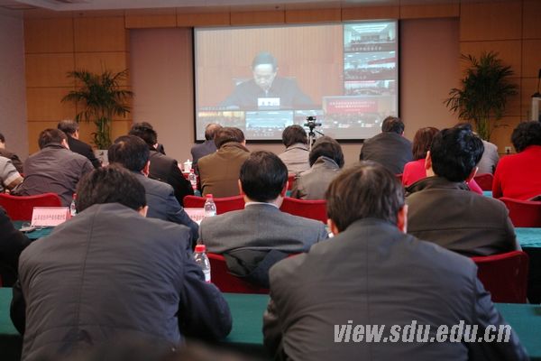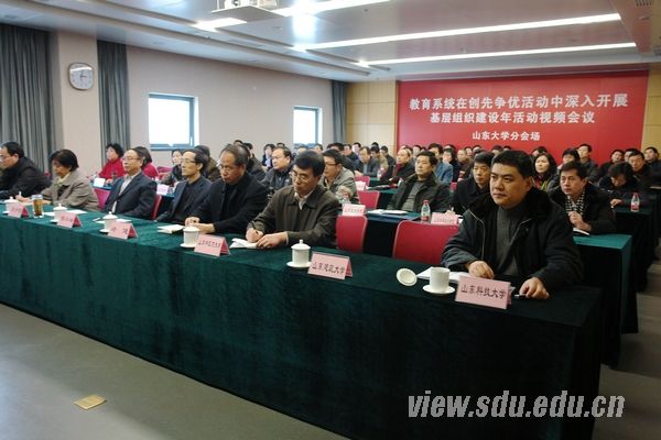驻济省属高校的党委负责人,山东大学创先争优活动办公室全体成员,部分基层党委、党总支、直属党支部书记,师生党员代表等参加了山大分会场视频会议。