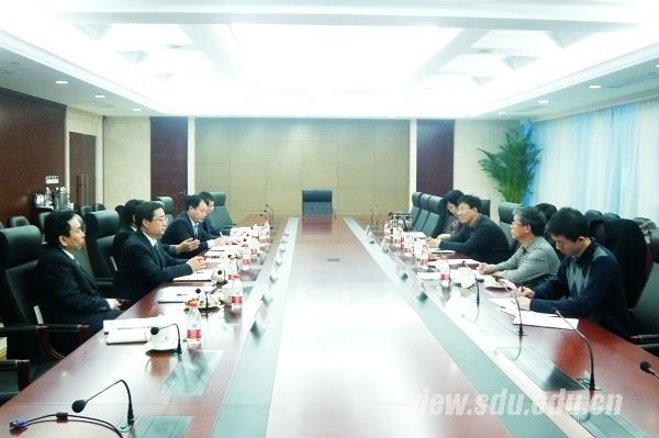 [本站讯]2月8日,山东大学校长徐显明率团访问山东能源集团,与山东能源集团董事长卜昌森进行亲切交流,推动校企合作。山东大学副校长娄红祥、山东能源集团总工程师翟明华参加座谈交流。