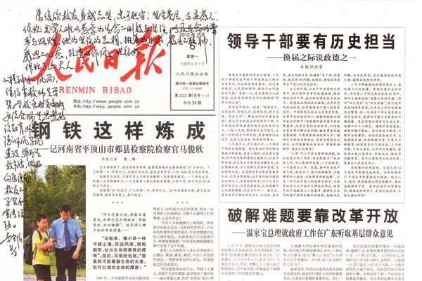 《人民日报》:钢铁这样炼成——记河南省平顶山市郏县检察院检察官马俊欣