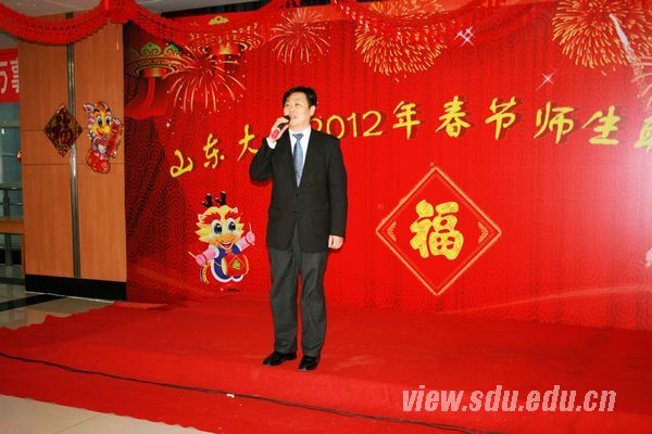 徐显明代表学校向今年寒假留校的同学致以诚挚的问候和新春的祝福,并向全体学生家长致以新春的问候。徐显明在致辞中介绍了山东大学在2011年取得的成就和2012年将要进行的重要工作。他说,2011年被誉为中国高等教育的“山大年”。吴邦国委员长做出重要批示,对山东大学确定的“建校120周年时建成世界一流大学”的目标给予了充分肯定。这一年学校完成了四件大事:一是以“文化校庆、学术校庆”为主题的110周年校庆活动取得圆满成功,被称为大学校庆的典范;二是制定了面向未来十年的《山东大学建设世界一流大学战略规划》(即《攀越计划》);三是省部共建山东大学协议签署,为学校的跨越式发展提供了重要支撑和强大动力;四是青岛校区建设全面启动,构建山东大学系统的探索迈出关键一步。同时在2011年,山东大学的师资队伍建设成效显著,其中诺贝尔物理奖获得者彼得•格林贝格尔教授来山东大学任教,方家熊院士受聘为光学高等研究中心主任,钱七虎院士受聘为土建学院名誉院长。在学校自身培养的杰出学者方面,彭实戈院士获聘普林斯顿全球学者,程林教授参与的丁肇中教授领衔的阿尔法磁谱仪(AMS)项目顺利升空。展望2012年,他表示,山东大学要重点做好以下几件大事:一是天大的事,就是创建世界一流大学;一是地大的事,就是建设青岛校区。同时,要进一步加强师资队伍建设,启动民生工程,优化办学环境。“天、地、人”合起来,就构成了山东大学2012年的主要工作。