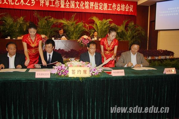 [本站讯]近日,文化部在江苏省常熟市举办了首批全国基层文化队伍培训基地授牌仪式,山东大学党委副书记方宏建出席仪式代表学校与文化部社会文化司、山东省文化厅等签订文化部全国基层文化队伍培训基地建设协议。这标志着文化部全国基层文化队伍培训基地正式落户山大。山东大学也因此成为首批四个全国基层文化队伍培训基地之一,同时也是文化系统外唯一一家承担此项培训任务的高等教育机构。