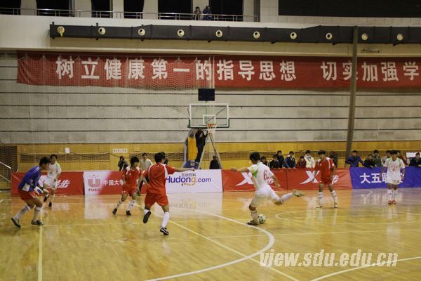 在为期5天的比赛中,山东大学足球队努力拼搏,顽强作战,分别以13:0、8:1、11:0、8:0、8:0、6:0、7:3的比分战胜了日照职业学院、山东体育学院、济南大学、山东财经大学、青岛大学、山东师范大学、青岛科技大学,成为唯一一支代表山东省参加全国大学生五人制足球比赛的队伍。