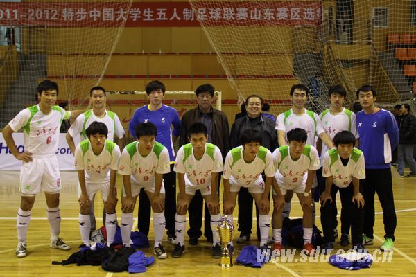[本站讯]11月20日,“特步”杯中国大学生五人制足球联赛山东赛区选拔赛在山东大学趵突泉校区体育馆落下帷幕,山东大学足球队以七战全胜的成绩摘得桂冠,青岛科技大学、青岛大学分获二、三名。